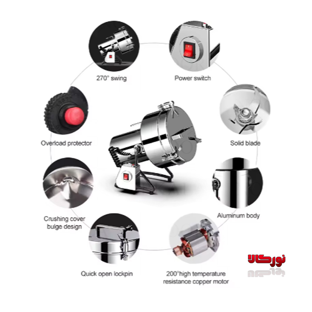 آسیاب صنعتی فونیکس با ظرفیت 3 کیلوگرم و قدرت 5000 وات ، نسل جدیدی از تجهیزات صنعتی و خرد کردن مواد است که با بهرهگیری از تکنولوژی روز دنیا ، قدرت ، دوام و راندمان را در یک دستگاه جمع کرده است . این آسیاب با طراحی مهندسیشده و موتور قدرتمند ، قادر است انواع مواد خشک و سخت مانند غلات ، ادویهجات ، مواد معدنی و صنعتی را در کمترین زمان و با بالاترین کیفیت آسیاب کند . اگر به دنبال دستگاهی هستید که سالها بدون افت کیفیت همراه تولید شما باشد، آسیاب صنعتی فونیکس انتخابی مطمئن و اقتصادی است .