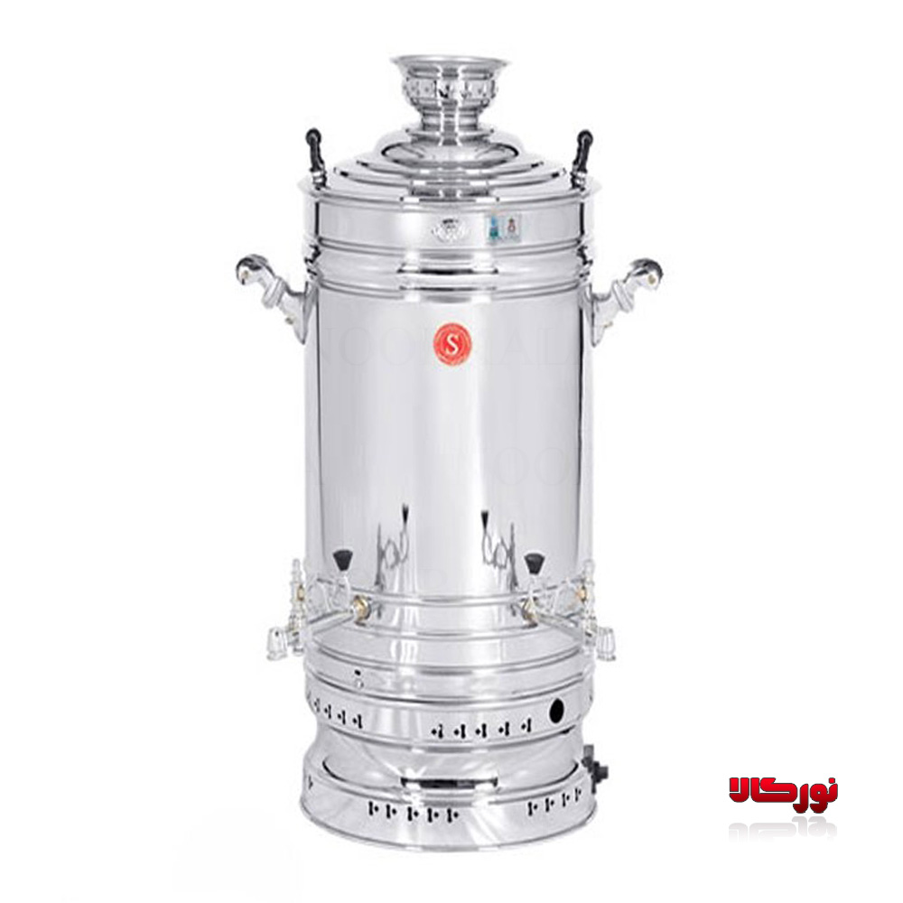 سماور 100 لیتری تنوره دار برادران سیفی تنها سماور استاندارد که بدون آب نمی سوزد . بدنه سماور برادران سیفی ساخته شده از آلیاژ برنج است که بهترین فلز برای جوشاندن آب به شمار می رود . آلیاژ برنج از ترکیب مس و روی ساخته می شوند که علاوه بر تامین نیاز بدن به این فلزات می تواند تمام ناخالصی و املاح زاید آب را جذب کرده و آب سالم و شفاف برای دم کردن چای خوش رنگ فراهم کند . بدنه برنجی سماور های برادرن سیفی با ضخامت2 تا 3 میلی هر گز سوراخ و خورده نمی شود همچنین روکش بیرونی سماور ها ترکیبی از فلزات نیکل و کروم است که با بروزترین تکنولوژی دنیا و دستگاههای مجهز آبکاری شده و به همین دلیل این سماور سالها براق و بدون لک باقی خواهد ماند . برای پاک کردن لک ها فقط با دستمال مرطوب روی سماور بکشید تا به راحتی مثل روز اول براق شود . دسته ها از جنس پت چوبی ترکیبی کاملا نسوز و باکالیت نسوز ساخته شده که در برابر حرارت غیر مستقیم 700 درجه مقاوم است. شیر بدون نیاز به واشر یا لاستیک محافظ و ساخته شده از برنج فشرده آلیاژی که نیاز به تعمیر نخواهد داشت .