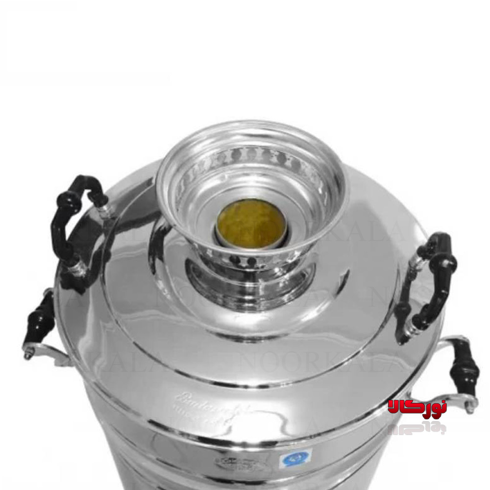 سماور 60 لیتری تنوره دار برادران سیفی تنها سماور استاندارد که بدون آب نمی سوزد . بدنه سماور برادران سیفی ساخته شده از آلیاژ برنج است که بهترین فلز برای جوشاندن آب به شمار می رود . آلیاژ برنج از ترکیب مس و روی ساخته می شوند که علاوه بر تامین نیاز بدن به این فلزات می تواند تمام ناخالصی و املاح زاید آب را جذب کرده و آب سالم و شفاف برای دم کردن چای خوش رنگ فراهم کند . بدنه برنجی سماور های برادرن سیفی با ضخامت2 تا 3 میلی هر گز سوراخ و خورده نمی شود همچنین روکش بیرونی سماور ها ترکیبی از فلزات نیکل و کروم است که با بروزترین تکنولوژی دنیا و دستگاههای مجهز آبکاری شده و به همین دلیل این سماور سالها براق و بدون لک باقی خواهد ماند . برای پاک کردن لک ها فقط با دستمال مرطوب روی سماور بکشید تا به راحتی مثل روز اول براق شود . دسته ها از جنس پت چوبی ترکیبی کاملا نسوز و باکالیت نسوز ساخته شده که در برابر حرارت غیر مستقیم 700 درجه مقاوم است. شیر بدون نیاز به واشر یا لاستیک محافظ و ساخته شده از برنج فشرده آلیاژی که نیاز به تعمیر نخواهد داشت .